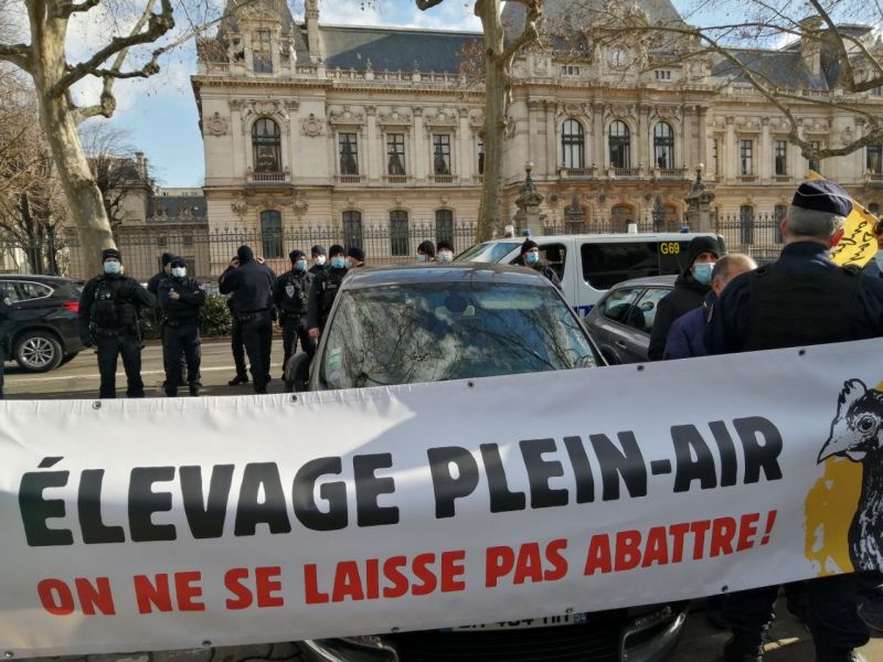 26.01.2021 - Lyon.Manifestation devant la préfecture de Lyon avec une centaine d'éleveuses et d'éleveurs de volailles plein air et de consommateurs.trices.
