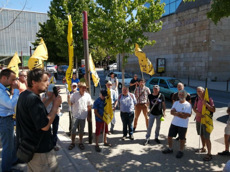 Des militant.es de la Confédération paysanne rassemblé.es ce mardi 7 septembre devant le tribunal du Mans.