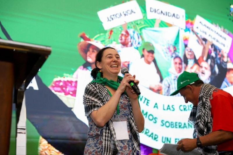 Morgan Ody, Coordinatrice générale de La Via Campesina, paysanne membre de la Confédération paysanne, lors de la 8e Conférence internationale en Colombie.