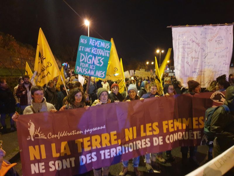 - Dans le Finistère, le groupe des paysannes de la Confédération paysanne 29 sera présent à la marche du 25 novembre à 18h à Quimper