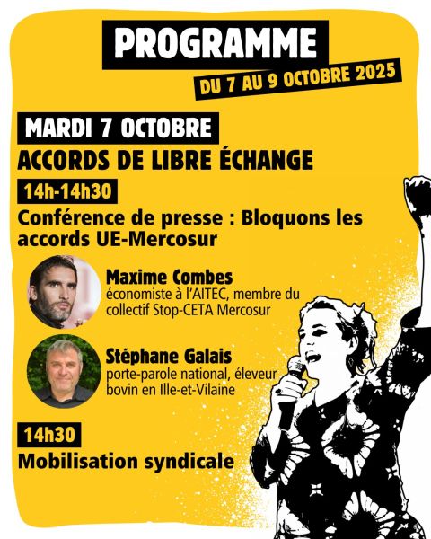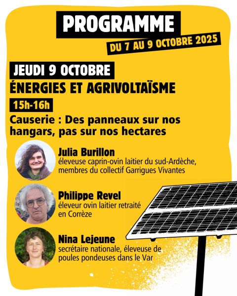 Chaque journée sera consacrée à une thématique d'intervention en lien avec l'élevage : accord de libre-échange UE*-Mercosur*, agrivoltaïsme et DNC.
