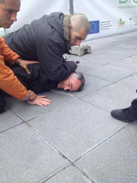 14h30 : Laurent Pinatel, porte-parole de la Conf' est mis à terre par les service de sécurité de Stéphane Le Foll.