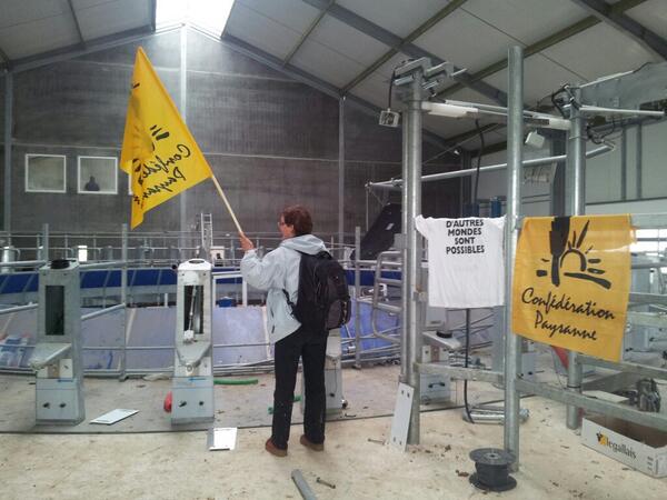 Une cinquantaine de paysans venus de toute la France viennent d'entrer sur le chantier de la ferme-usine des 1000 vaches dans la Somme. A quelques semaines de la première traite annoncée par Michel Ramery, la Confédération paysanne a, une nouvelle fois, pris ses responsabilités. Ses militants entament en ce moment le démontage de la salle de traite, énorme machine destinée à traire trois fois par jours les 1000 vaches que cette usine doit accueillir.