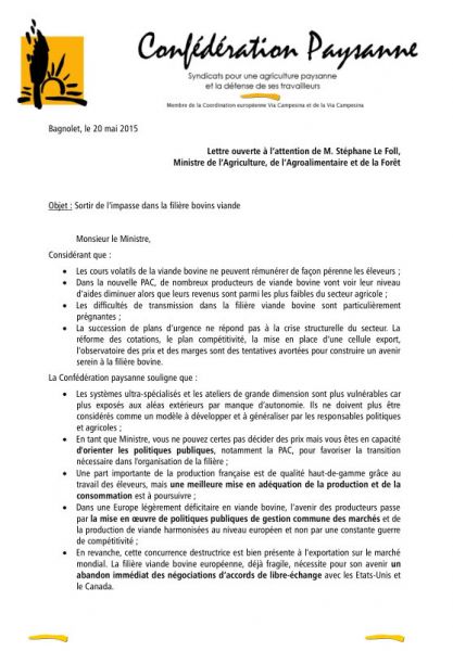 03.09.2015 - Crise de l'élevage : Le gouvernement à la botte de la FNSEA