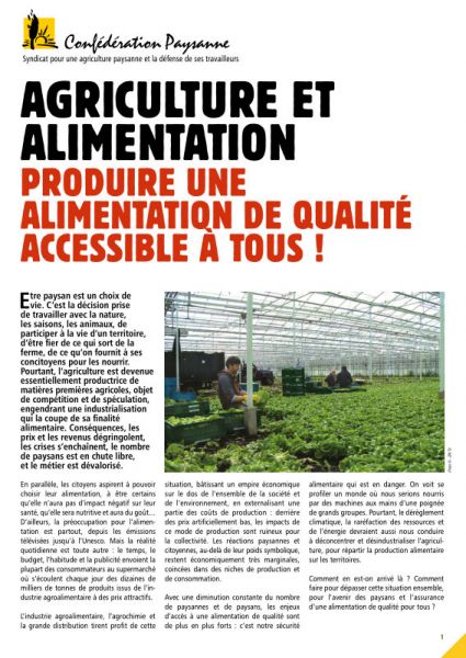Pour mener à bien les ateliers de concertation, deux documents ont été réalisés qui présentent les enjeux de la campagne : une plaquette, facile à distribuer qui va à l'essentiel, sous la forme d'un dialogue entre un citoyen et une paysanne ; et un 4 pages qui permet de s'imprégner de la réflexion travaillée qui appelle cette campagne.