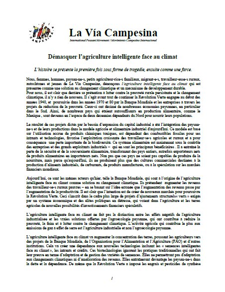 POUR UNE VRAIE ALTERNATIVE FACE AU CHANGEMENT CLIMATIQUE : L'AGRICULTURE PAYSANNE
