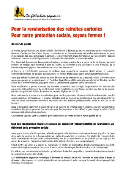Protection sociale : dossier de presse de la mobilisation du 17 octobre 2024 |