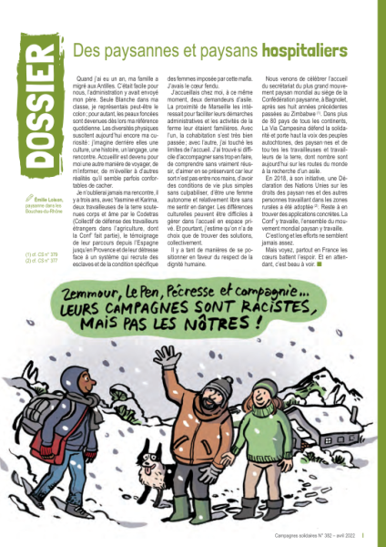 | Document de base de la Coordination Europeenne Via Campesina sur la migration et le travail rural salarié | Dossier : Des paysannes et paysans hospitaliers – Campagnes solidaires – avril 2022 |
