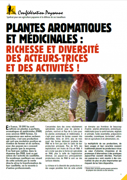 La filière PAM* en France est aujourd'hui mise à mal par une législation inadaptée aux productions des petites fermes diversifiées. La Confédération paysanne milite pour :