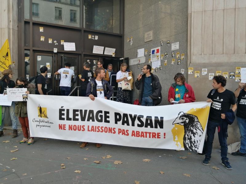 La Confédération paysanne a occupé les locaux du ministère de l'agriculture ce 25 octobre pour défendre les élevages plein-air. Quatre-vingt paysannes et paysans, venu.es de 30 départements, se sont mobilisé.es pour réclamer des mesures sanitaires adaptées aux élevages plein-air. Ils sont ...