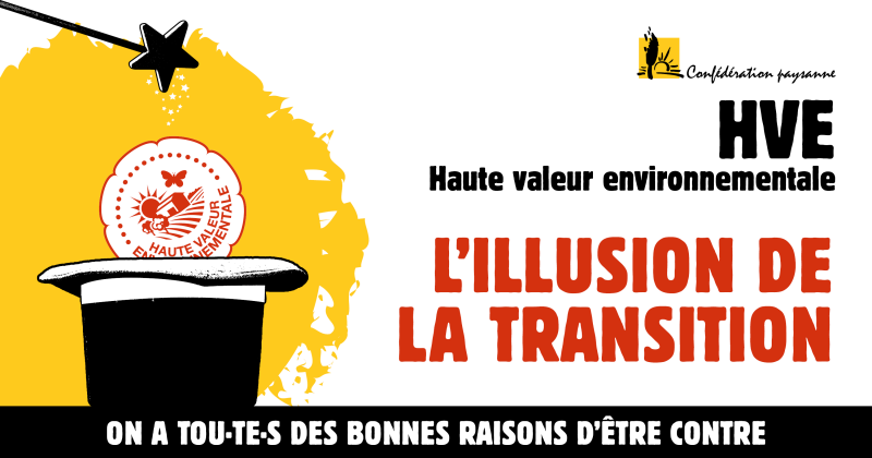 La Confédération paysanne a organisé ce matin avec Agir pour l'Environnement, France Nature Environnement, et le syndicat Synabio une conférence de presse pour dénoncer l'illusion de transition agroécologique que constitue la certification HVE, Haute Valeur Environnementale. Cette ...