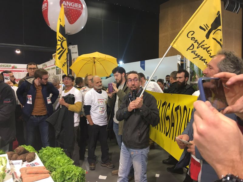 La Confédération paysanne s'est mobilisée au SIVAL (salon des productions végétales) ce mardi 14 Janvier pour dénoncer la commercialisation frauduleuse de semences d'endives OGM. Un défilé festif de plus d'unce centaine de paysan.ne.s et de citoyen.ne.s mené par une endive géante a souhaité ...