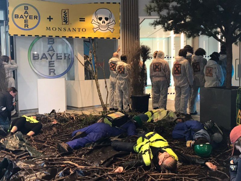 Ce mercredi 22 mai à 8h, 70 militant·e·s de la Confédération paysanne, d'Attac, d'Extinction rebellion et de RadiAction ont envahi le hall d'entrée du siège de Bayer-Monsanto France, à La Garenne-Colombes (Île-de-France), pour y installer une scène de chaos environnemental et sanitaire. ...