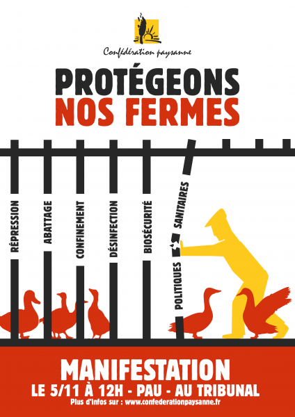 La Confédération paysanne se mobilise le 5 novembre à Pau pour soutenir Panpi Sainte-Marie, le secrétaire général d'ELB - la Confédération paysanne du Pays Basque - qui sera jugé au nom du syndicat pour avoir résisté contre l'abattage de volailles pendant la grippe aviaire. Lors de la crise ...