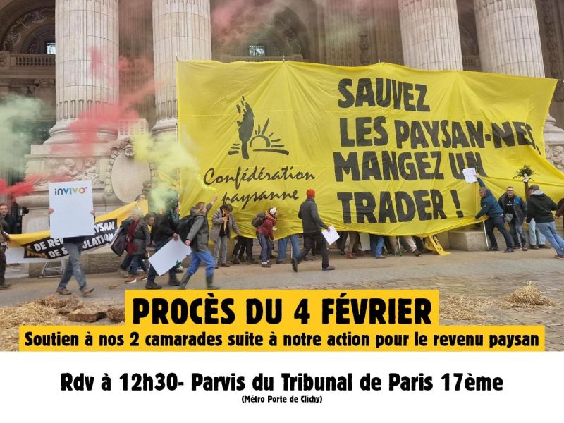 Action pour le revenu paysan au Grand Palais : la Confédération paysanne saisit la Défenseure des Droits et appelle à un rassemblement de soutien pour le procès du 4 février